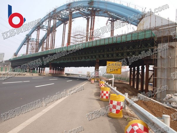 5)加強安全防護,設置安全防護標志。貝雷橋施工時,應設置安全欄桿和安全網,腳手架必須牢固施工。貝雷橋架安裝范圍內必須設置警戒線,操作過程中不得設置警戒線,并指派專人指揮。嚴禁操作人員飲酒后工作,嚴格遵守操作規程,營造安全文明的施工環境。